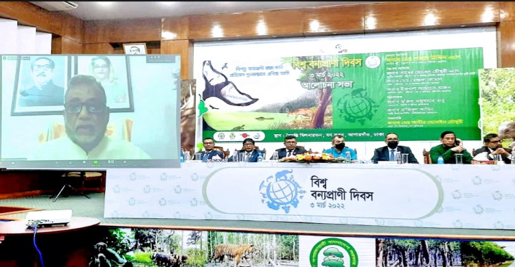 “বিপন্ন বন্যপ্রাণী রক্ষা করি, প্রতিবেশ পুনরুদ্ধারে এগিয়ে আসি।” প্রতিপাদ্য ধারণ করে বিশ্ব বন্যপ্রাণী দিবস ২০২২ উপলক্ষ্যে বন অধিদপ্তরে আয়োজিত আলোচনা সভায় ঢাকাস্থ তার সরকারি বাসভবন হতে ভার্চুয়ালি যুক্ত হয়ে প্রধান অতিথির বক্তব্যে পরিবেশমন্ত্রী এসব কথা বলেন।
