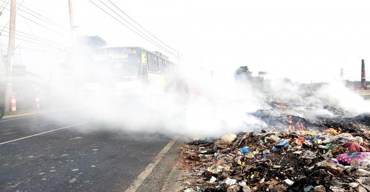 পাংশায় ময়লার ভাগাড়ের আগুনের ধোঁয়ায় মহাসড়ক অন্ধকার, দুর্ঘটনার শঙ্কা
