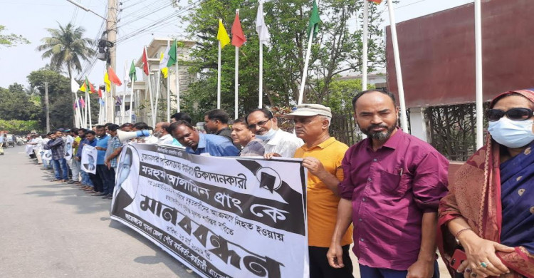 সুজানগর পৌরসভার টিকাদানকারী কর্মচারী আল আমিন হত্যার বিচারের দাবিতে মানববন্ধন
