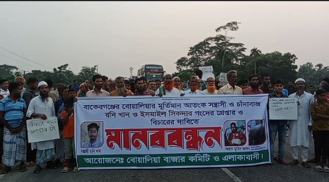ঢাকা বরিশাল মহাসড়ক অবরোধ বিক্ষোভ মিছিল ও মানববন্ধন