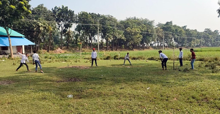 রাণীনগরে সিম্বা ইউনাইটেড উচ্চ বিদ্যালয়ে মানসম্মত খেলার মাঠ না খাকলেও সব খেলা ধুলায় এগিয়ে শিক্ষার্থীরা