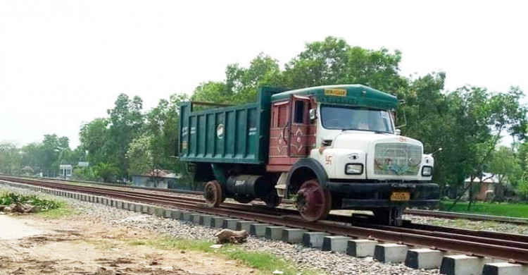 বিভিন্ন ধরনের মালামাল পরিবহনের জন্য স্থলপথের গুরুত্বপূর্ণ বাহন ট্রাক। সড়কপথ দাপিয়ে বেড়ানো এ বাহনটিকে সম্প্রতি রেললাইনের ওপর দিয়ে চলাচল করতে দেখা গেছে। টায়ারের জায়গায় ট্রেনের চারটি চাকা সংযুক্ত করে রেললাইনে চলছে বাহনটি। টঙ্গী-জয়দেবপুর রেললাইনের ধীরাশ্রম এলাকায় কয়েক দিন ধরেই চলছে একটি ট্রাক। এতে লাগানো হয়েছে ট্রেনের ৪টি চাকা।