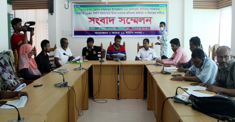 পিরোজপুরে ১১ ইউপি সদস্যের ওপর হামলার প্রতিবাদে চেয়ারম্যানের বিরুদ্ধে সংবাদ সম্মেলন
