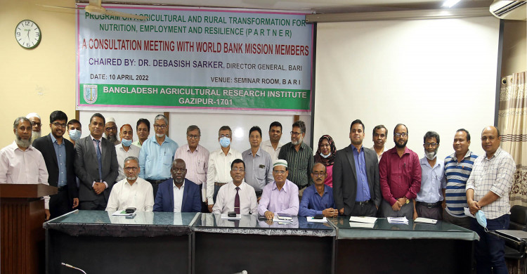 বাংলাদেশ কৃষি গবেষণা ইনস্টিটিউট (বারি) ও বিশ্ব ব্যাংক মিশনের একটি প্রতিনিধি দলের মধ্যে একটি মত বিনিময় সভা অনুষ্ঠিত হয়েছে। রবিবার বারি’র সেমিনার কক্ষে ‘Program on Agricultural and Rural Transformation for Nutrition, Employment and Resilience (PARTNER)’ শীর্ষক একটি প্রকল্প প্রণয়নের উদ্দেশ্যে এই মত বিনিময় সভা অনুষ্ঠিত হয়।