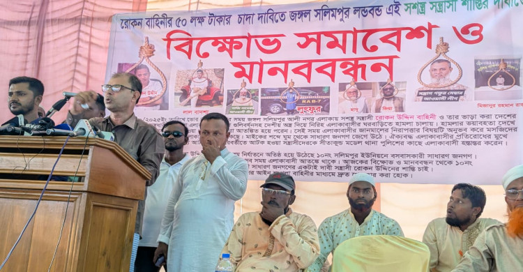 সলিমপুরে সন্ত্রাসী রোকন উদ্দিনের শাস্তির দাবীতে বিক্ষোভ