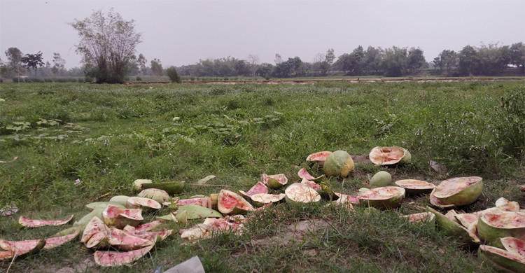 রাতের আঁধারে পাঁচ বিঘা জমির তরমুজ চুরি ও নষ্ট করল দুর্বৃত্তরা