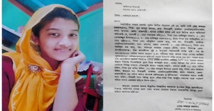 ওই ছাত্রীর বাবা ফজলুর রহমান সকালের সময়কে জানান, উপজেলার বকুলতলা স্কুলে দশম শ্রেণিতে পড়ালেখা করে তার মেয়ে। সে ফৌজদারপাড়ায় এক মাস্টারের কাছে প্রাইভেট পড়ে। গত ১৪ এপ্রিল বৃহস্পতিবার সকাল অনুমান সাড়ে ৬টার দিকে প্রাইভেট পড়ার জন্য বাড়ি থেকে বের হয় মেয়ে। পথিমধ্যে বখাটে পারভেজ রনি ও তার সাঙ্গপঙ্গরা সিএনজিতে জোরপূর্বক তুলে অজ্ঞাত স্থানে নিয়ে যায়। খবর পেয়ে অনেক খোঁজাখুঁজি করেও মেয়ের আর কোনো সন্ধান পাননি তিনি।
