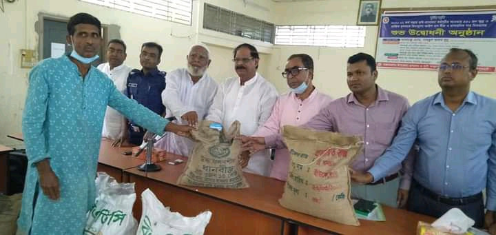 আলোচনা শেষে উপজেলার ৮টি ইউনিয়ন ও পৌরসভার ৪৫০ জন কৃষকের প্রতিজনকে ডিএপি ২০ কেজি, এমওপি ১০ কেজি ও ৫ কেজি বীজ ধান প্রদান করেন অনুষ্ঠানের প্রধান অতিথি।
