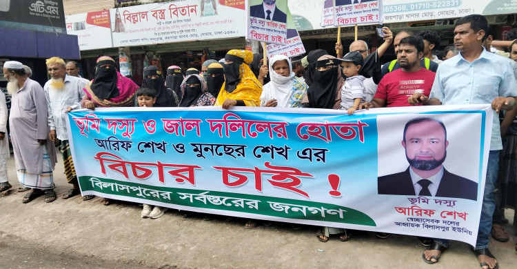 বিলাসপুর ইউনিয়ন স্বেচ্ছাসেবক দলের আহ্বায়কের বিরুদ্ধে জাল দলিল ও প্রতারণার অভিযোগে মানববন্ধন