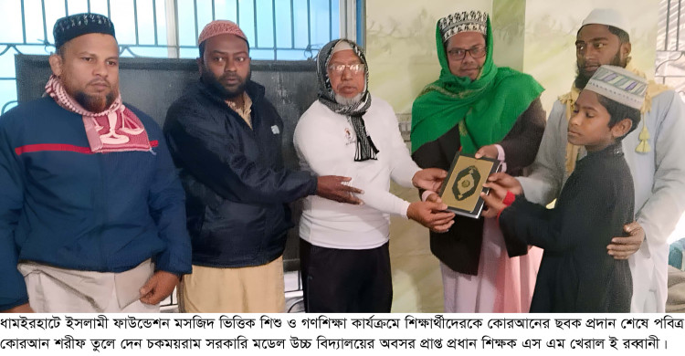 ধামইরহাটে মসজিদ ভিত্তিক শিশু ও গণশিক্ষা কার্যক্রমের শিশুদেরকে কোরআনের ছবক প্রদান