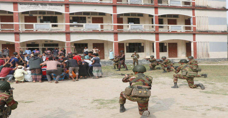 মনোহরগঞ্জে ভোটকেন্দ্র রক্ষায় সেনাবাহিনীর মহড়া অনুষ্ঠিত