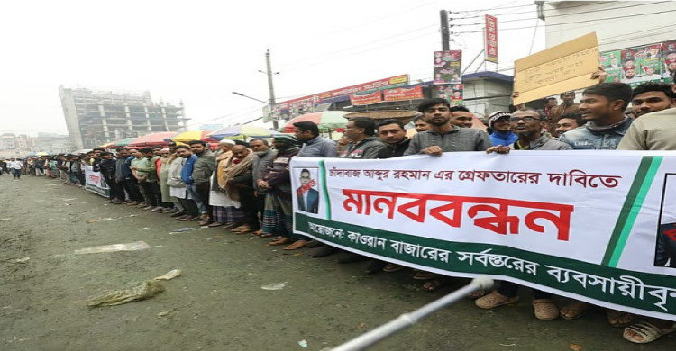 কারওয়ান বাজারে চাঁদাবাজিবিরোধী মানববন্ধনে হামলা: প্রতিবাদে ব্যবসায়ীদের লাঠিসোঁটা নিয়ে বিক্ষোভ