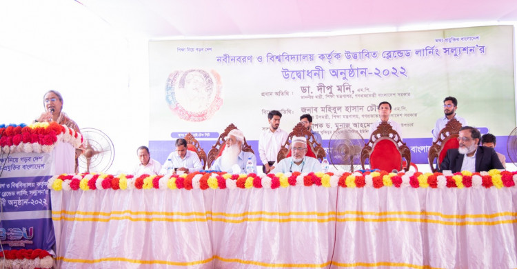 বুধবার সকালে বঙ্গবন্ধু শেখ মুজিবুর রহমান ডিজিটাল ইউনিভার্সিটি'তে নবীন বরণ ও বিশ্ববিদ্যালয় উদ্ভাবিত ব্লেন্ডেড লার্নিং সল্যুশন’র উদ্বোধনী অনুষ্ঠানে প্রধান অতিথির বক্তব্যে শিক্ষা মন্ত্রী ডা.দীপু মনি এ কথা বলেন।