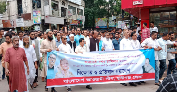 প্রধানমন্ত্রীকে কটুক্তি ও হত্যার হুমকির প্রতিবাদে মুন্সিগঞ্জে আওয়ামী লীগের বিক্ষোভ সমাবেশ