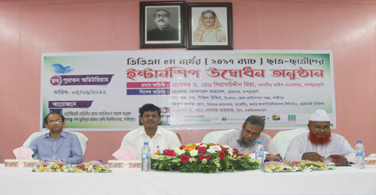 অনুষদীয় ডিন অধ্যাপক ড. মো. গোলাম হায়দারের সভাপতিত্বে অনুষ্ঠানে বিশেষ অতিথি হিসেবে উপস্থিত ছিলেন- বিশ্ববিদ্যালয়ের ট্রেজারার অধ্যাপক তোফায়েল আহমেদ, গাজীপুর জেলা প্রাণিসম্পদ দপ্তরের ডিএলও ডা. এসএম উকিল উদ্দিন এবং স্কয়ার ফার্মাসিউটিক্যালসের সিনিয়র ম্যানেজার (এগ্রোভেট) বিপ্লব কুমার সেন।