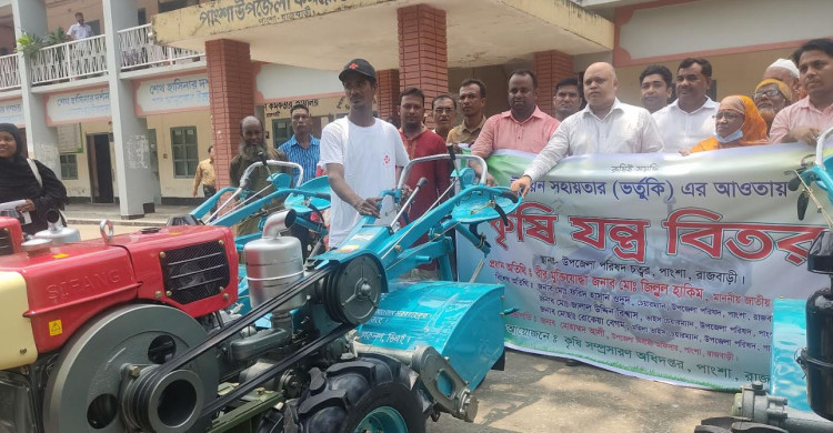 রাজবাড়ীর পাংশায় ১৪ জন কৃষককে ৫০% সরকারি ভর্তুকি মূল্যের কৃষিযন্ত্র (সিডার মেশিনযুক্ত পাওয়ার টিলার) বিতরণ করা হয়েছে। উপজেলা কৃষি সম্প্রসারণ অধিদপ্তরের আয়োজনে বুধবার (৮ জুন) দুপুর ১২টায় উপজেলা পরিষদ চত্বরে যন্ত্রগুলো বিতরণ করা হয়।