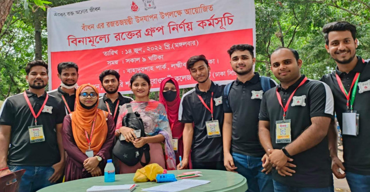 “বিশ্ব রক্তদাতা দিবস ও বাঁধন এর রজতজয়ন্তী" উপলক্ষে দিনব্যাপী বিনামূল্যে রক্তের গ্রুপ নির্ণয় কর্মসূচি পালন করেছে স্বেচ্ছায় রক্তদাতাদের সংগঠন বাঁধন, সরকারি শহীদ সোহরাওয়ার্দী কলেজ ইউনিট।