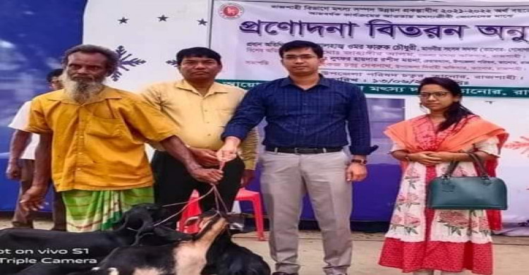 তানোরে মৎস্যজীবীদের মাঝে ছাগল বিতরণ