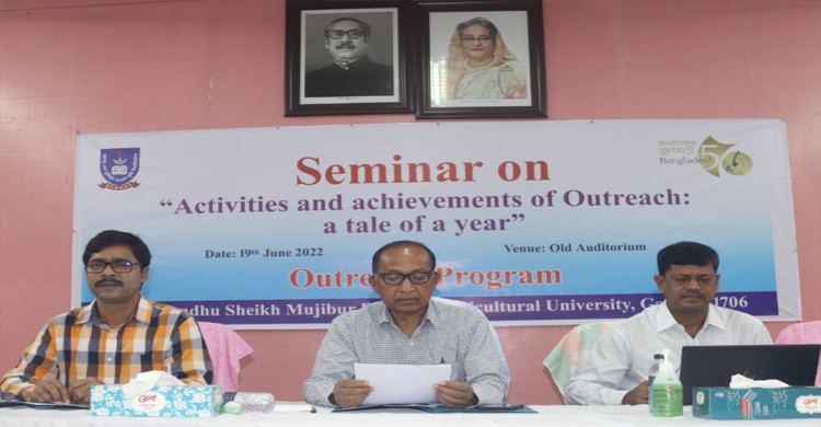 বঙ্গবন্ধু শেখ মুজিবুর রহমান কৃষি বিশ্ববিদ্যালয়ের বহিরাঙ্গন কার্যক্রমের বিগত এক বছরের সাফল্য ও অর্জন শীর্ষক সেমিনার অনুষ্ঠিত হয়েছে। রোববার (১৯ জুন) বিশ্ববিদ্যালয়ের এক অডিটরিয়ামে এ সেমিনার অনুষ্ঠিত হয়। বিশ্ববিদ্যালয়ের সকল শিক্ষকের অংশগ্রহণে অনুষ্ঠিত সেমিনারে প্রধান অতিথি হিসেবে উপস্থিত ছিলেন উপাচার্য অধ্যাপক ড. মো. গিয়াসউদ্দীন মিয়া।