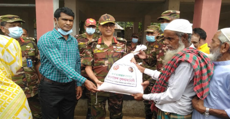 দুর্গাপুরে সেনাবাহিনীর ত্রাণসামগ্রী বিতরণ ও বিশুদ্ধকরণ পানি সাপ্লাই কার্যক্রমের উদ্বোধন