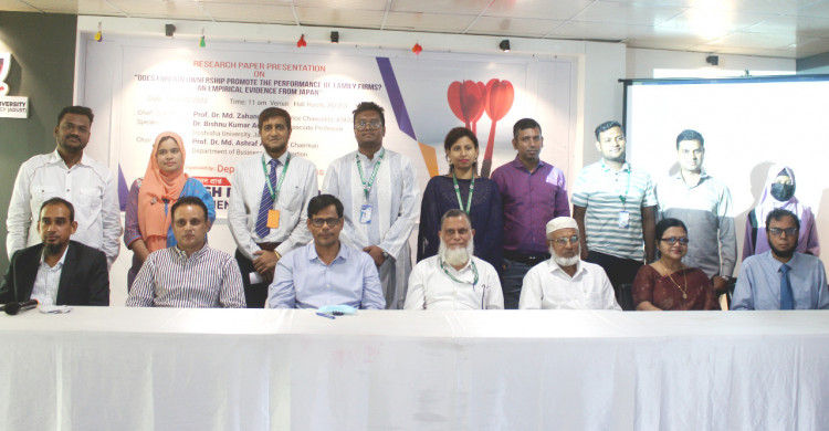 অতীশ দীপঙ্কর ইউনিভার্সিটি অব সায়েন্স এন্ড টেকনোলজি’র অডিটোরিয়ামে ২৫ জুন ২০২২ “ডাজ ফরেইন ওনারশিপ প্রমোট দি পারফর্মেন্স অব ফ্যামিলি ফার্মস? - এন ইম্পিরিকাল ইভিডেন্স ফ্রম জাপান” শীর্ষক গবেষণা প্রবন্ধের উপর এক সেমিনার অনুষ্ঠিত হয়েছে। সেমিনারে প্রধান অতিথি হিসেবে উপস্থিত ছিলেন অতীশ দীপঙ্কর ইউনিভার্সিটির উপাচার্য প্রফেসর ড. মো. জাহাঙ্গীর আলম। মূল প্রবন্ধ উপস্থাপন করেন জাপানের দোশিশা ইউনিভার্সিটি’র একাউন্টিং বিভাগের সহযোগী অধ্যাপক ড. বিষ্ণু কুমার অধিকারী। সেমিনারে সভাপতিত্ব করেন বিশ্ববিদ্যালয়ের ব্যবসায় প্রশাসন বিভাগের চেয়ারম্যান প্রফেসর ড. মোঃ আশরাফ আলী খান এবং সঞ্চালনার দায়িত্বতে ছিলেন বিভাগের কো-অর্ডিনেটর জনাব মোঃ সারোয়ার হোসেন ইসলাম।