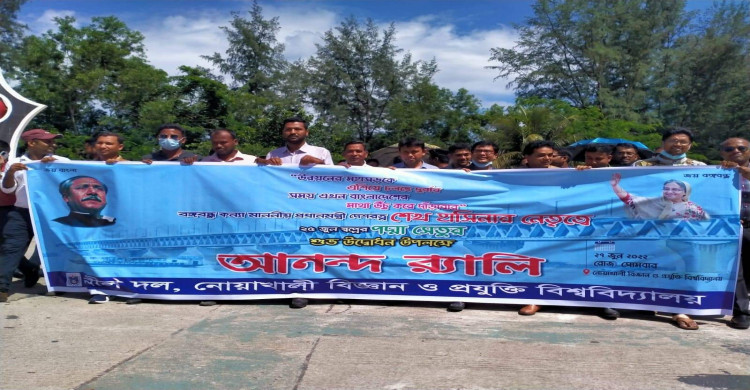 পদ্মা সেতুর উদ্বোধন উপলক্ষে নোয়াখালী বিজ্ঞান ও প্রযুক্তি বিশ্ববিদ্যালয়ে (নোবিপ্রবি) আনন্দ র্যালি করেছে নোবিপ্রবি নীল দল। বিশ্ববিদ্যালয় প্রশাসনিক ভবনের সামনে থেকে তারা এ র্যালি বের করে। সোমবার (২৭ জুন) দুপুর ২টার দিকে আওয়ামীপন্থী শিক্ষকদের সংগঠন নীল দলের শিক্ষকবৃন্দ এ র্যালি বের করে।