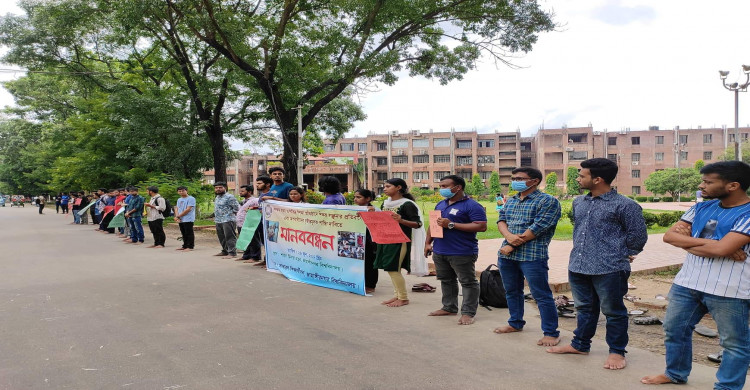 শিক্ষক হত্যা ও লাঞ্চনার প্রতিবাদে জাবিতে মানববন্ধন