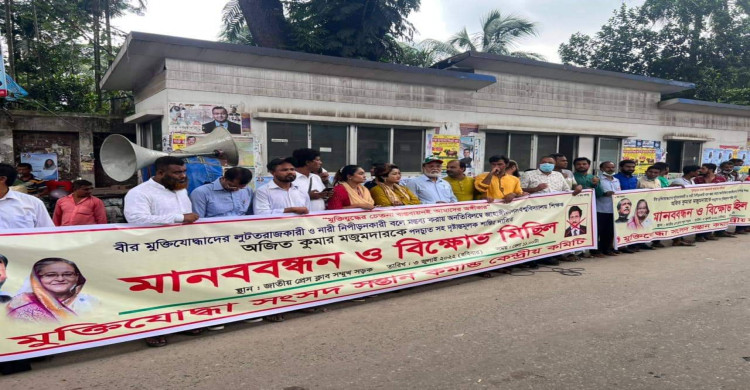জাহাঙ্গীরনগর বিশ্ববিদ্যালয়ের অধ্যাপক অজিত কুমার মজুমদারকে পদচ্যুতিসহ আইনের আওতায় আনার দাবিতে মানববন্ধন ও বিক্ষোভ কর্মসূচি করেছে মুক্তিযোদ্ধা সংসদ সন্তান কমান্ড কেন্দ্রীয় কমিটি। রোবার (৩ জুলাই) বেলা ১১টায় জাতীয় প্রেসক্লাবের সামনে এ মানববন্ধন অনুষ্ঠিত হয়।