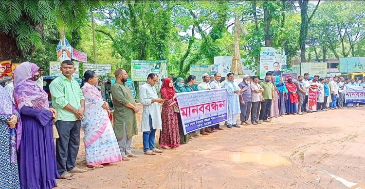 শিক্ষক হত্যা ও মানহানির প্রতিবাদে দুর্গাপুরে মানববন্ধন