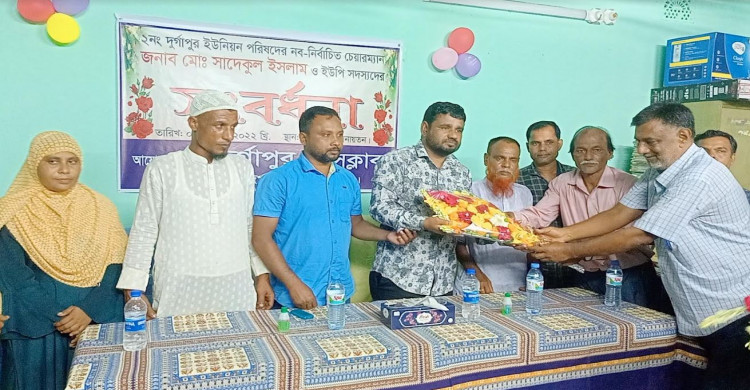নেত্রকোনার দুর্গাপুর উপজেলার ২নং দুর্গাপুর ইউনিয়ন পরিষদের নবনির্বাচিত চেয়ারম্যান মো. সাদেকুল ইসলাম এবং নবনির্বাচিত ৯ জন ইউপি সদস্যকে সংবর্ধনা জানিয়েছে দুর্গাপুর প্রেসক্লাব। মঙ্গলবার (৫ জুলাই) রাতে প্রেসক্লাব মিলনায়তনে এ সংবর্ধনা অনুষ্ঠানের আয়োজন করা হয়।
