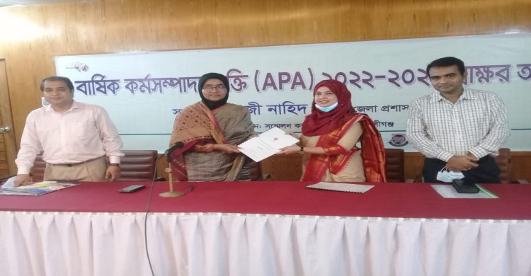 মুন্সিগঞ্জ জেলা প্রশাসনের বার্ষিক কর্মসম্পাদন চুক্তি (এপিএ) ২০২২-২৩ অনুষ্ঠিত হয়েছে। জেলা প্রশাসনের আয়োজনে (৬ জুলাই) বুধবার বেলা ১২ টায় সার্কিট হাউজ মিলনায়তনে উক্ত অনুষ্ঠানটি সম্পন্ন করা হয়।