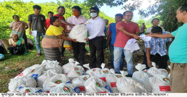 দুর্গাপুরে আদিবাসীদের মাঝে প্রধানমন্ত্রীর ঈদ উপহার বিতরণ