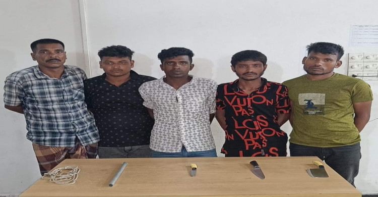 আটককৃতরা হলো- মো. শাহজালাল (২৭), মো. রিয়াজ (২২), মো. সবুজ (২৭), মো. আনিছুর রহমান ওরফে ইয়াবা সোহাগ (২৮) এবং মো. আলী হোসেন (৪০)। এ সময় তাদের কাছ থেকে একটি চাপাতি, দুটি চাকু, একটি লোহার রড, প্লাস্টিকের রশি উদ্ধার করা হয়।