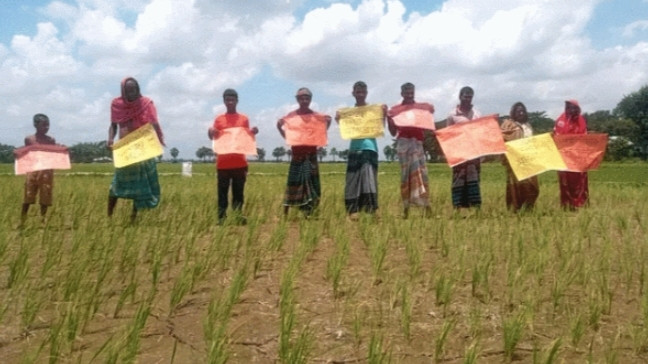 তানোরে পানির দাবিতে ক্ষেতেই কৃষকদের প্রতীকী কর্মসূচি