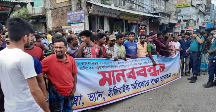 গাজীপুরে ৩ চাকার ইজিবাইক চালকদের মানববন্ধন