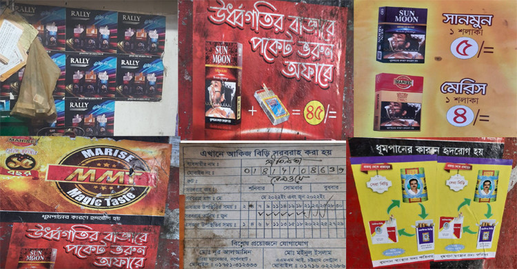 এর মধ্যে এগিয়ে রয়েছে ব্রিটিশ আমেরিকান টোব্যাকো কোম্পানি (বিএটিসি)। এছাড়া আবুল খায়ের গ্রুপ, নেভী অপশন,নেভী শেখ স্মুক, লাকি স্ট্রাইক, ব্লেক, মেরিস সিগারেট, রেলি, রয়েল, ডারবি সিগারেটের নাম ও দামসহ ব্যানারে উল্লেখ করা হচ্ছে। এমনকি এখানে ন্যায্যমূল্যে পণ্য (সিগারেট) বিক্রয় করা হয় বলেও প্রচার চালাচ্ছে। শুধু তাই নয় চকলেট, বিস্কুট ও মিনারেল ওয়াটারের মুল্যের সাথেও সিগারেটের মুল্যের তুলনা করে ধূমপানে আকৃষ্ট করছে জনসাধারণকে। আইন ফাঁকি দিতে সঙ্গে বিক্রি করা হচ্ছে চকলেট ও নানা পণ্য।