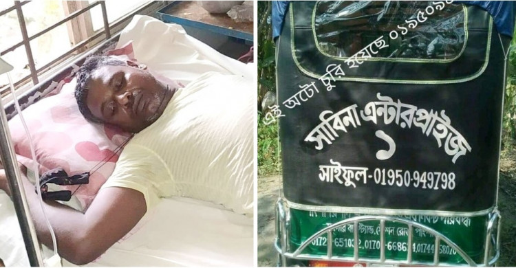 রাজবাড়ীর পাংশায় ঋণের টাকায় কেনা অটোরিকসা চুরি হওয়া ভারসাম্য হারিয়ে হাসপাতলে ভর্তি হয়ে চিকিৎসাধীন মো. সাইফুল ইসলাম (৩৯) নামে এক অটোরিকসা চালক।