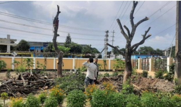 সহকারী কমিশনার (ভূমি) প্রিয়াংকা দাশ মুঠোফোনে সাংবাদিককে বলেন, জেলা প্রশাসক স্যার ভূমি অফিস পরিদর্শনে এসে ক্যাম্পাসের সৌন্দর্য বৃদ্ধির কারণে গাছ দুটি কেটে ফেলার মৌখিক অনুমতি দিয়েছেন। তাছাড়া গাছের আমগুলো জাতের না হওয়ায় গাছগুলো কাটা হচ্ছে।