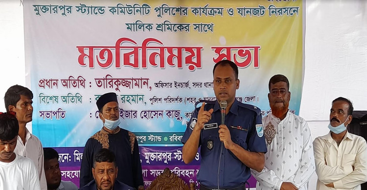 মুক্তারপুর স্টান্ডে কমিউনিটি পুলিশের কার্যক্রম ও যানজট নিরসনে মালিক শ্রমিকের সাথে মত বিনিময় সভা অনুষ্ঠিত হয়েছে।