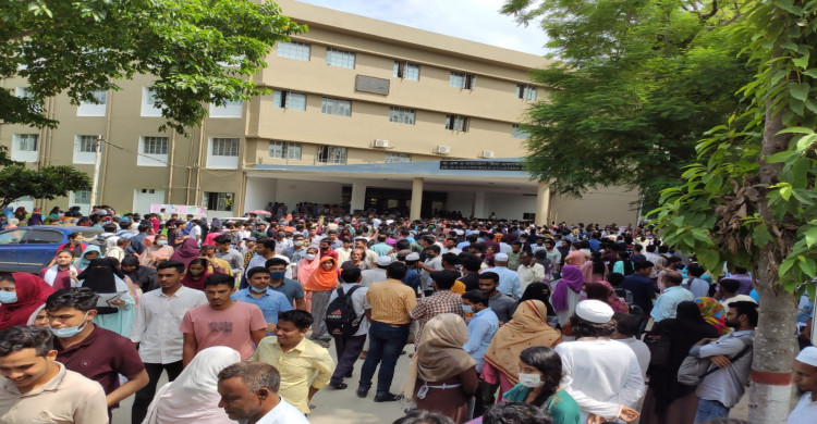 চট্রগ্রাম থেকে ১২ ঘণ্টা পর রাজশাহী এসে পৌঁছালাম। কিন্তু এখানে কোন হোটেলে রুম ফাঁকা পেলাম না। পরে বাধ্য হয়ে ৪৬ কিলোমিটার দূরে পাশের জেলা নাটোরে চলে যেতে হয়েছে গতকাল (২৪ জুলাই)। আজ সকালে তড়িঘড়ি করে নাটোর থেকে রাজশাহী এসেছি ভর্তি পরীক্ষা দিতে। পরীক্ষা কি দিব, আগেই ক্লান্ত হয়ে পড়েছি। যদি বিভাগীয় সদরে ভর্তি পরীক্ষা হতো, তাহলে এ ভোগান্তি পোহাতে হতো না। আক্ষেপের সুরে এসব কথা বলছিলেন চট্টগ্রাম থেকে ভর্তি পরীক্ষা দিতে আসা নিলয় দাস।