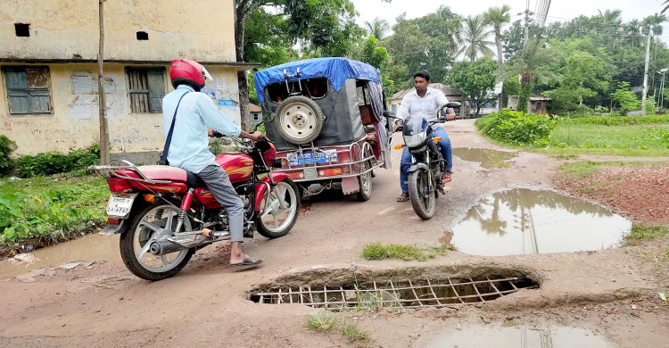 সড়কের পাশের বিল্পব নামের এক ব্যবসায়ী বলেন, বৃষ্টি হলে গর্তে পানি বেধে থাকে। একটু গতিতে গাড়ি চালালে দোকানের মধ্যে কাদা পানি ছিটে আসে।