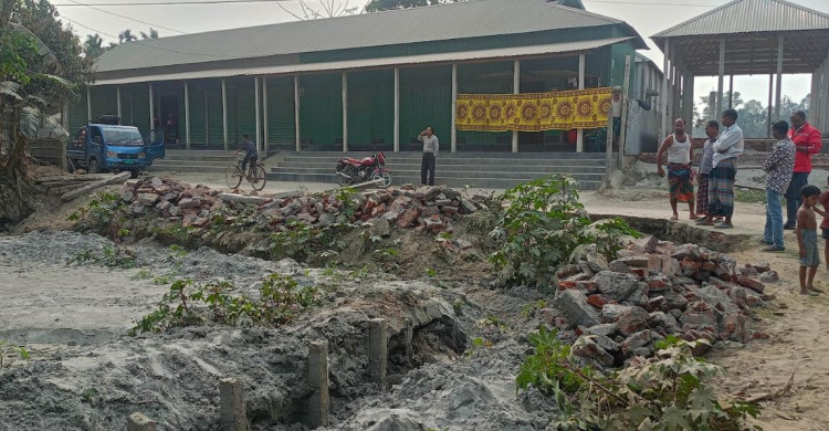 রৌমারীতে গাইডওয়াল ভেঙ্গে ইট-খুটি নিয়ে গেলেন যুবদল নেতা