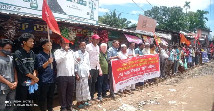 দুর্গাপুরে জ্বালানি তেলের দাম কমানোর দাবিতে সিপিবির মানববন্ধন