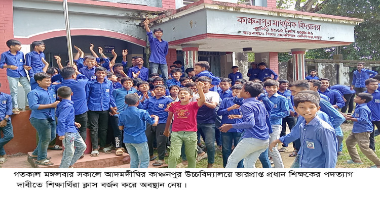 আদমদীঘির কাঞ্চনপুর হাই স্কুলের প্রধান শিক্ষকের বিরুদ্ধে শিক্ষার্থীদের বিক্ষোভ