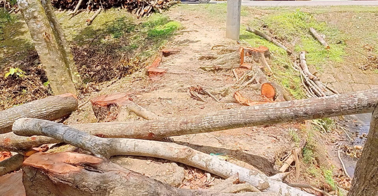 দুর্গাপুরে বিনা অনুমতিতে সরকারি রাস্তার গাছ কর্তন