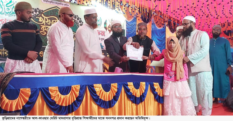 নাগেশ্বরীতে বৃত্তিপ্রাপ্ত শিক্ষার্থীদের মাঝে সনদ, নগদ অর্থ ও হাফেজ ছাত্রদের পাগড়ি প্রদান