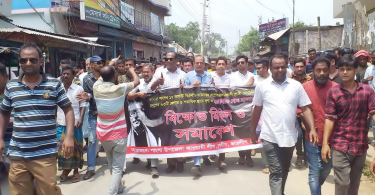 আজ দুপুর ১২টায় পাংশা পৌর শহরের টেম্পোস্ট্যান্ড মোড়ে অবস্থিত উপজেলা আওয়ামী লীগের দলীয় কার্যালয় থেকে একটি বিক্ষোভ মিছিল বের হয়। মিছিলটি শহরের প্রধান প্রধান সড়ক প্রদক্ষিণ করে কালীবাড়ি মোড়ে এসে সমাবেশে রূপ নেয়।