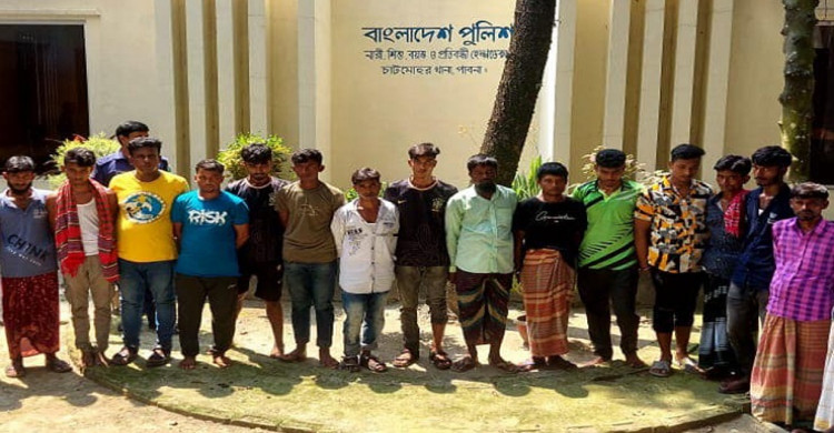 আটককৃতরা হলেন- পাবনার ভাঙ্গুড়া উপজেলার উত্তর মেন্দা গ্রামের নাজিম উদ্দিন (১৯), হাসু আহমেদ (২২), আজমত হোসেন (২৪), শাকিল আহমেদ (১৯), সোহেল হোসেন (২১), আব্দুল কাদের (১৯), সোহান হোসেন (১৯), রফিকুল ইসলাম (১৯), আলাউদ্দিন (১৯), গজারমারা গ্রামের শাকিল হোসেন (১৮), শাহনগর গ্রামের মধু ইসলাম (১৫), নাটোরের বড়গাছা মহল্লার নিসাবা বেগম কিরণ (২৪), নাটোরের গুড়পাড়ার আয়শা পারভীন (১৬), নৌকার মাঝি চাটমোহর উপজেলার করকোলা গ্রামের রাশেদুল ইসলাম (৩২) ও তার সহকারী কুষ্টিয়ার ঠাকিমারার জহুরুল ইসলাম (২৭)।