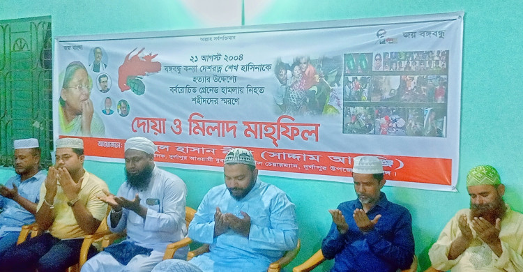 গ্রেনেড হামলায় নিহতদের স্মরণে দুর্গাপুরে দোয়া মাহফিল