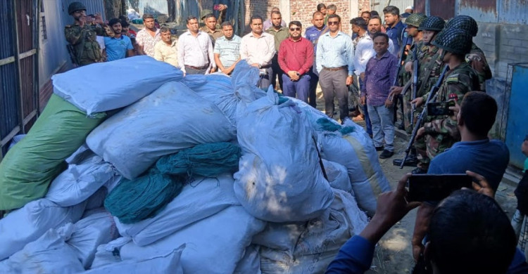 পাবনা জেলার ফরিদপুর ও সাঁথিয়ায় যৌথ অভিযানে ৫৬ হাজার মিটার অবৈধ চায়না দুয়ারী জাল জব্দ